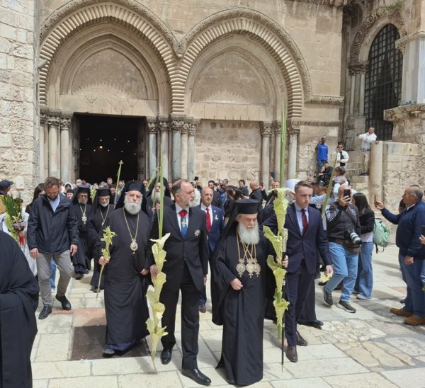 Following the Divine Liturgy, the procession of the palm branches took place three times around the Holy Edicule and at the various holy sites within the Church, maintaining our right as the second guardian of the Stone of the Angel.