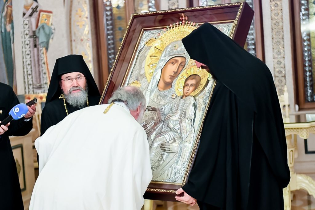 ‘Thank you for your devotion to this holy icon of the Prodromitissa Mother of God,’ the Patriarch said expressing his joy for receiving the replica of the icon as ‘a precious gift for the Romanian People’s Salvation Cathedral.’