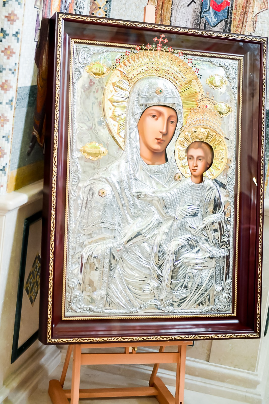 The replica of the icon was painted in the workshops of the Prodromos Skete, being plated in silver in Athens.
