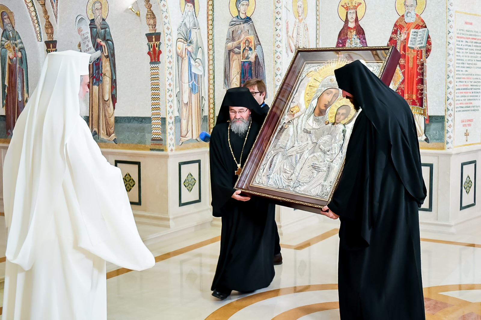 The Abbot of the Romanian Skete of the Honourable Forerunner on Mount Athos presented His Beatitude Patriarch Daniel with a replica of the Prodromitissa Wonderworking icon of the Mother of God to be enshrined in the newly-consecrated National Cathedral.