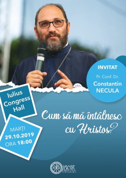 ASCOR Timișoara organizează marți, 29 octombrie 2019, o conferință în care Părintele Profesor Constantin Necula va discuta cu tinerii pe tema „Cum mă întâlnesc cu Hristos”.