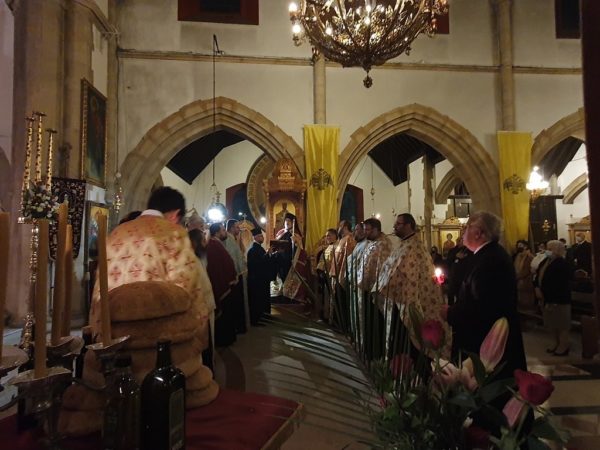 On Sunday, October 25, His Eminence Archbishop Nikitas presided over Great Vespers at the Church of Saint Demetrios in Edmonton, N. London, and on Monday, October 26, His Eminence presided over Matins and served the Divine Liturgy at the same Church.