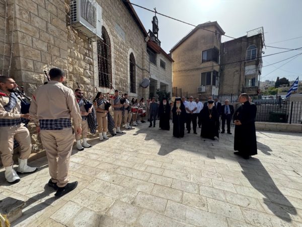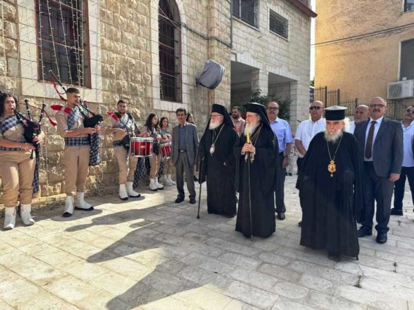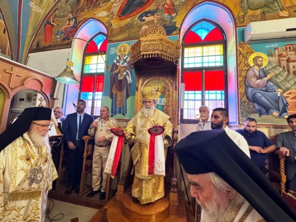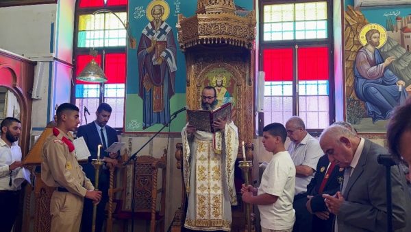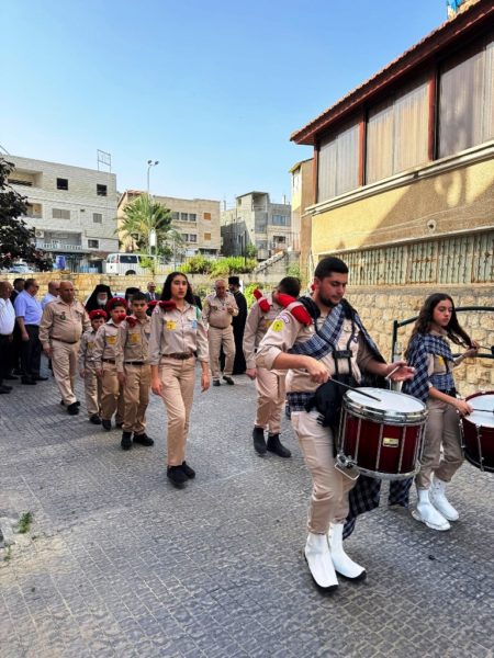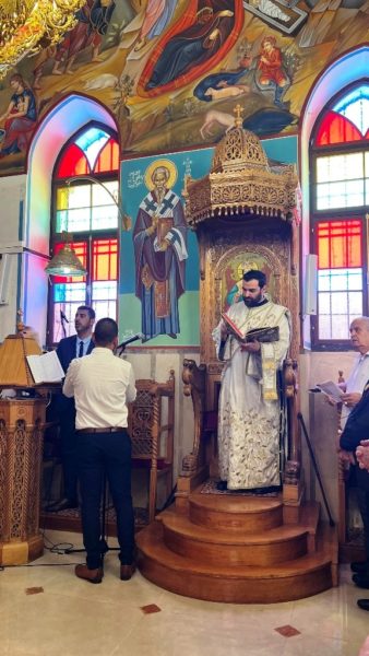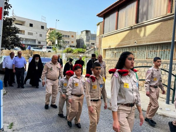 There, His Beatitude was warmly received by the Orthodox Christian Scout Corps. Following this, He celebrated the Divine Liturgy in the beautiful Church of Saint George in Reineh. Concelebrating with His Beatitude were His Eminence Metropolitan Kyriakos of Nazareth, His Eminence the Elder Chief Secretary Archbishop Aristarchos of Constantina, Archimandrite Nektarios, Archimandrite Christodoulos, the parish priest of this community of Saint George in Reineh Fr Simeon, Archdeacon Mark, and Hierodeacon Eulogios. The church chanters of this parish sang in Arabic, and the faithful parishioners attended with reverence.