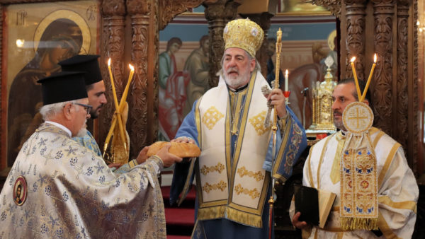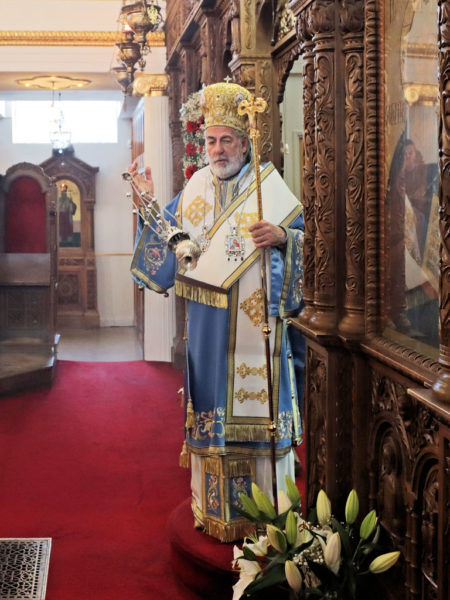 His Eminence presided at the Divine Liturgy, concelebrating with the Revd Protopresbyter Georgios Zafeirakos, parish priest, and assisted by the Revd Archdeacon George Tsourous. The church was filled with faithful, gathered to honour the cloud of saints who have shone forth in the light of Christ.