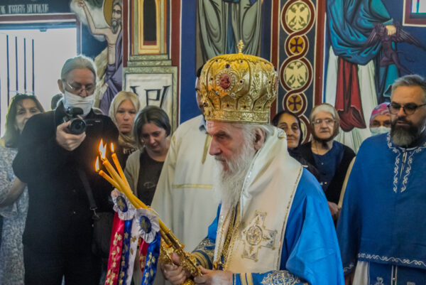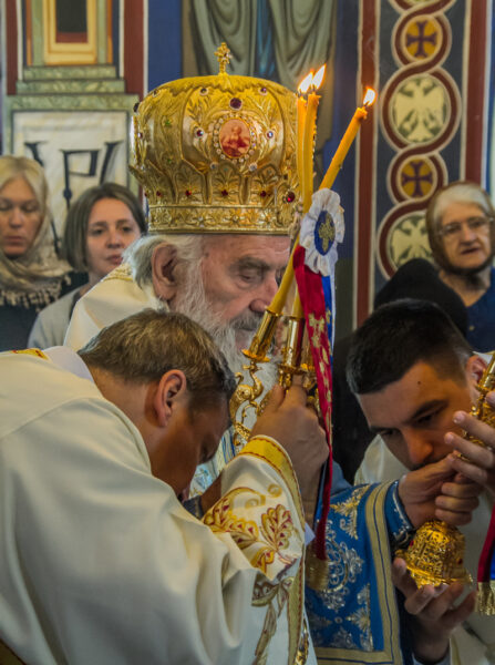 The Patriarch was concelebrated by protopresbyter-staurophor Bozo Bakajlic, Diocesan dean of Zemun-New Belgrade; presbyter AndjelkoDoder, principal of the church; archdeacon Stevan Rapajic and deacon Radomir Vrucinic, teacher at the Theological Seminary of Saint Sava in Belgrade.