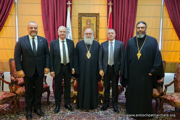 His Beatitude John X, Greek Orthodox Patriarch of Antioch and All the East received the Members of Parliament for the Koura District—Messrs. Fadi Karam, Georges Atallah, and Adib Abdel Massih—at the patriarchal residence in Balamand.