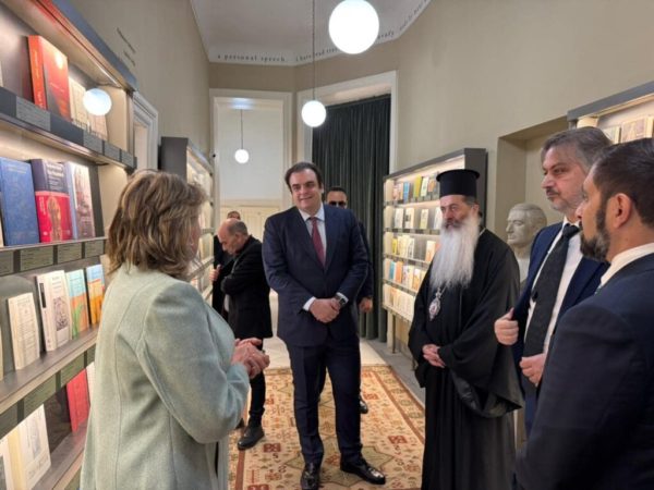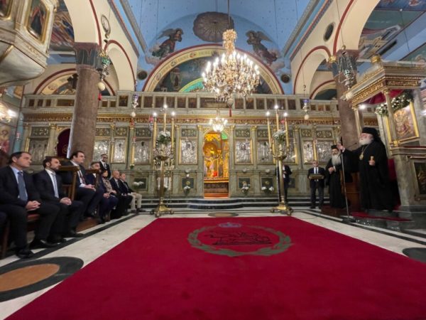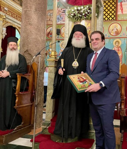 Concluding the visit, Patriarch Theodore presented Minister Pierrakakis with a sacred icon of Saint Catherine the Great Martyr. He noted that the marble column on which Saint Catherine was martyred is preserved in the Patriarchal Church of Saint Sabbas.