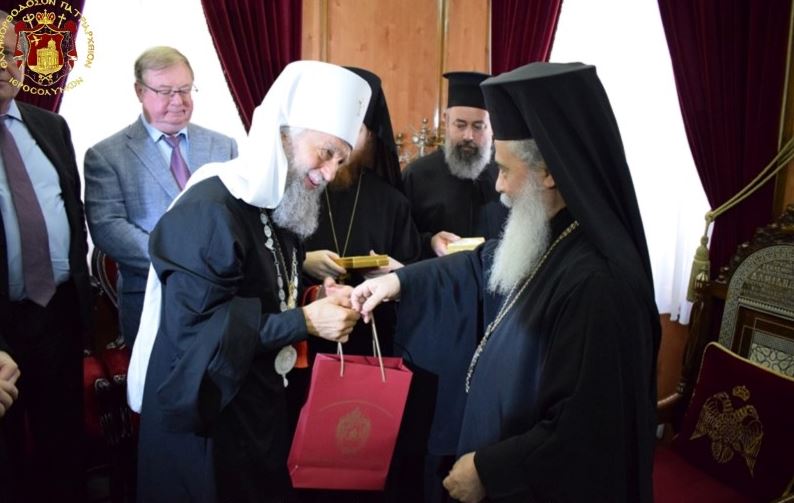 During the meeting, the chairman of the Imperial Orthodox Palestine Society, Sergey Stepashin, thanked His Beatitude on behalf of the society and briefed him on the activity of the society in the Holy Land, and especially for the suffering Christians of Syria.