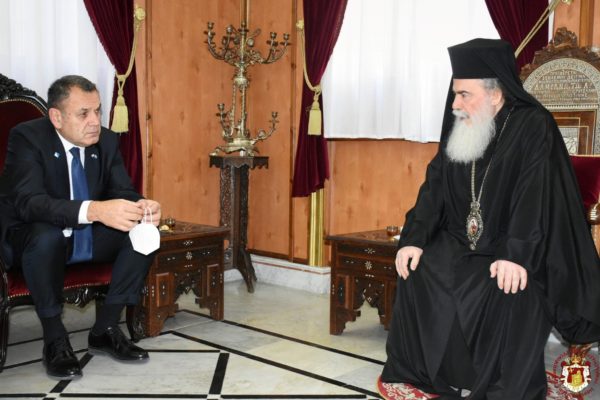 Patriarch of Jerusalem Theophilos receives visiting Greek DM Panagiotopoulos