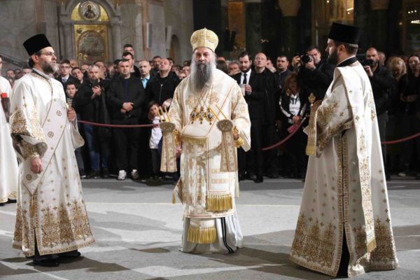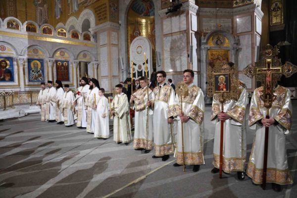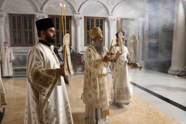 The Patriarch was concelebrated by His Grace Bishop Stefan of Remesiana, Archimandrite Nektarije, protosynchelloi Danilo and Nektarije, protopresbyter-staurophors Vladimir Vukašinović and Stojadin Pavlović, archpriests Zoran Ranković, Dragan Šovljanski, Predrag Prodić and Đorđe Stojisavljević, synchellos Stojisavljević, synchellos Andronik Dunaev from the Russian Orthodox Church, presbyters Zoran Devrnja and Branislav Kedžić, protodeacons Mladen Kovačević, Dragan Radić and Radomir Vrućinić and deacon Đorđe Petrović.