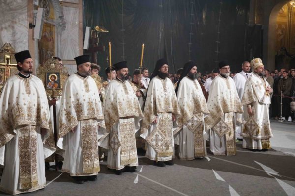His Holiness kyr Porfirije, the Serbian Patriarch served the Easter Liturgy at midnight in the Cathedral church of Saint Sava in Vračar, Belgrade (photo gallery).