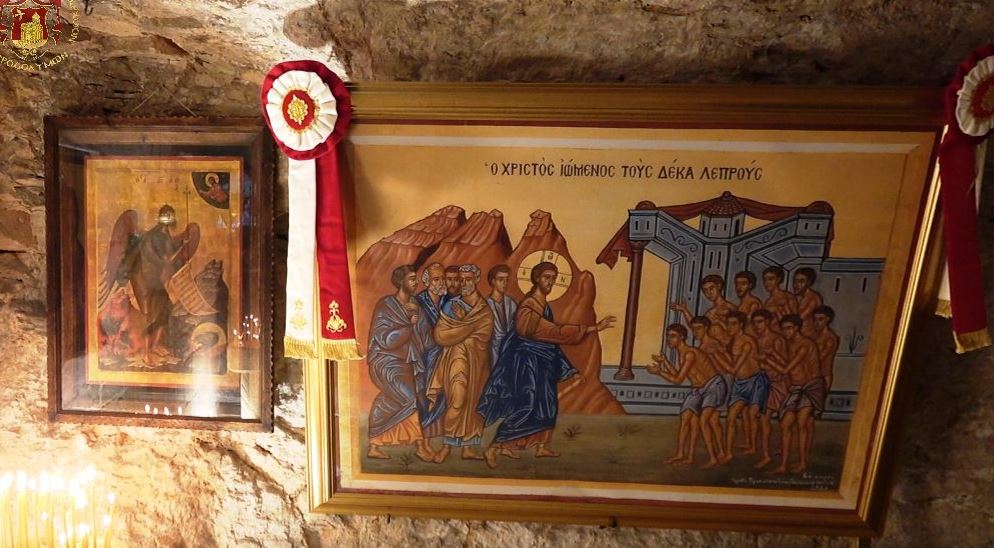 Today’s gospel narrative, my dear brothers and sisters, is not a mere parable, but a fact that happened at a certain place and time. And we say this because this Rum-Orthodox ancient Byzantine Church is built above the cave of the isolation of the ten lepers, in the certain town from which Jesus passed via Samaria and Galilee, heading towards Jerusalem (Luke 1:11).