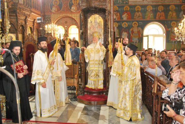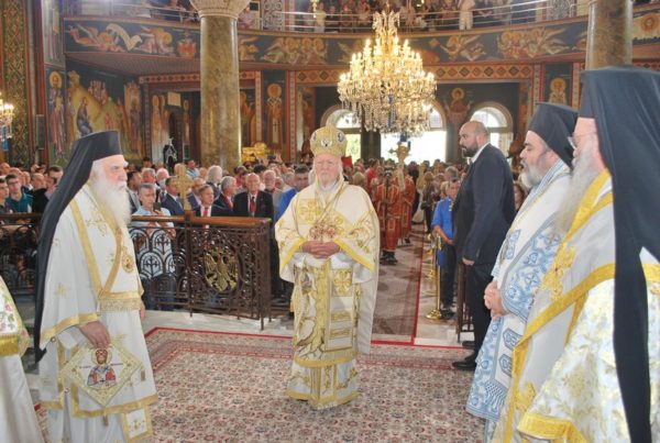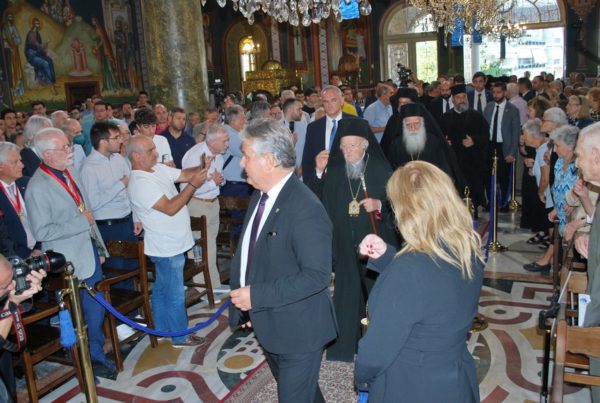 In the Divine Liturgy, which was celebrated with due Byzantine magnificence, both the Municipal Authority of the city, led by the Mayor Mr. Georgios Koutelakis, and political leaders participated. From early on, the Metropolitan Church was packed not only with parishioners of Saint Fotini, but also with faithful believers from other Parishes who went to receive the blessing of the Ecumenical Patriarch.
