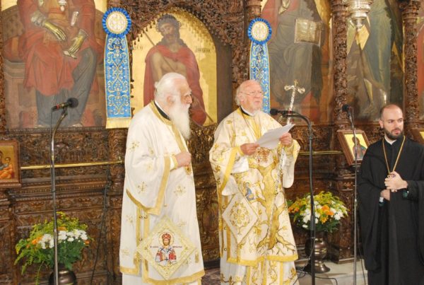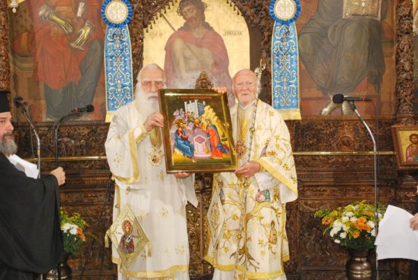 His All-Holiness presided over the Patriarchal Divine Liturgy, and was joined in concelebration by Their Eminences Metropolitan Bartholomew of Smyrna, Metropolitan Kyrillos of Imbros and Tenedos, Metropolitan Dorotheos of Drama and the Local Shepherd, Metropolitan Symeon of Nea Smyrni. The Matins Service proceeded the Divine liturgy and was officiated by His Eminence Metropolitan Kyrillos of Imbros and Tenedos. Also present and joined in prayer were Their Eminences, Metropolitan Joseph of Proikonnisos, Metropolitan Metropolitan Theodoritos of Laodicea, and Metropolitan Chrysosytomos of Vereniki.