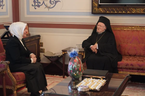Immediately afterwards, His All-Holiness had a cordial meeting with the President of the Institution, Ms Esra Ceceli İslam, who had earlier welcomed him at the entrance of the church and accompanied him to her office.