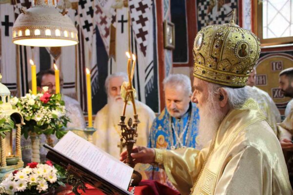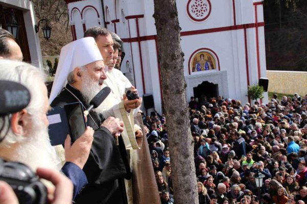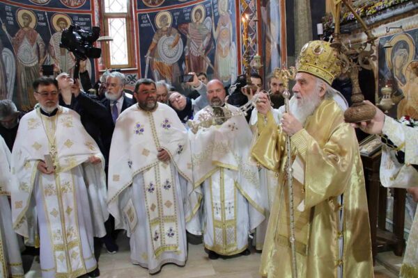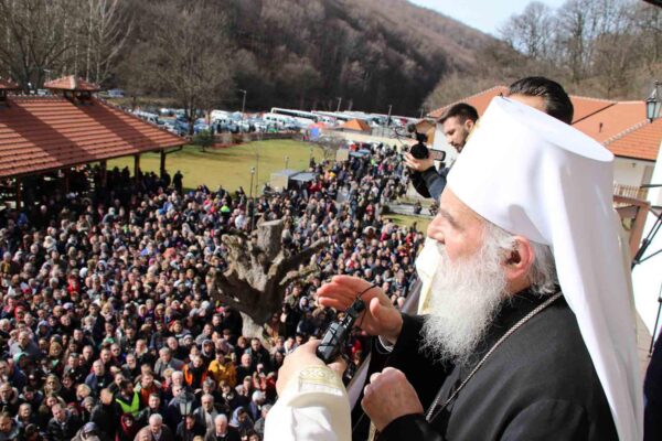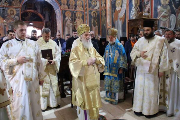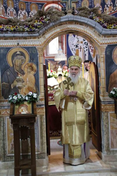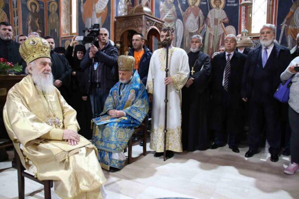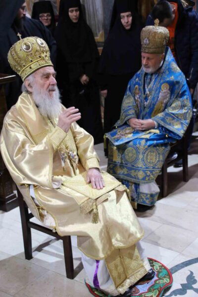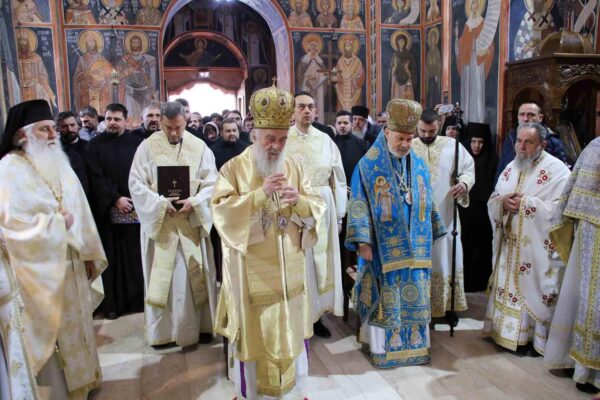 His Holiness Irinej, Serbian Patriarch, celebrated the Holy Liturgy with the concelebration of His Grace Bishop Ignatije of Branicevo at the Tuman Monastery on 23 February 2020.