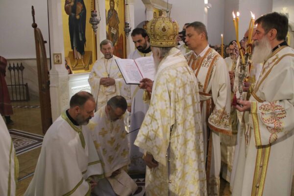 At the Divine Liturgy Patriarch Irinej promoted presbyters Aleksandar Bajic and Vojislav Kostic into the rank of an archpriest.