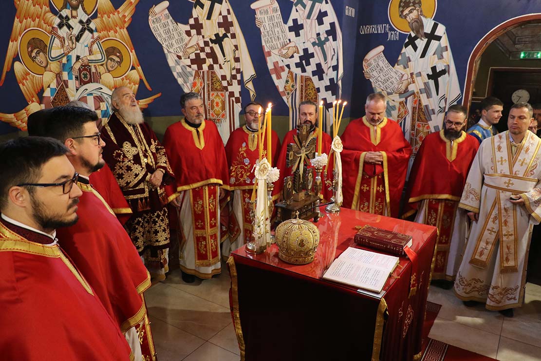 The Patriarch was concelebrated by archpriests Zoran Perkovic, Jevgenji Lehac, Nebojsa Topolic, Slaven Vukomanovic and Georgije Kovac from the Diocese of Mohacev (Ukrain), protonamesnik Rade Jovic and Dragisa Tepavac and others.