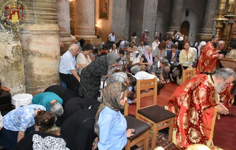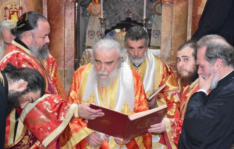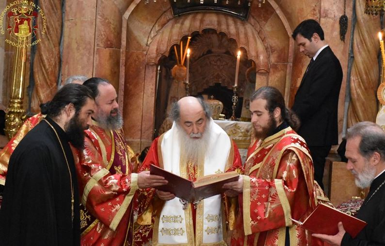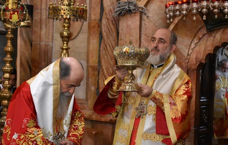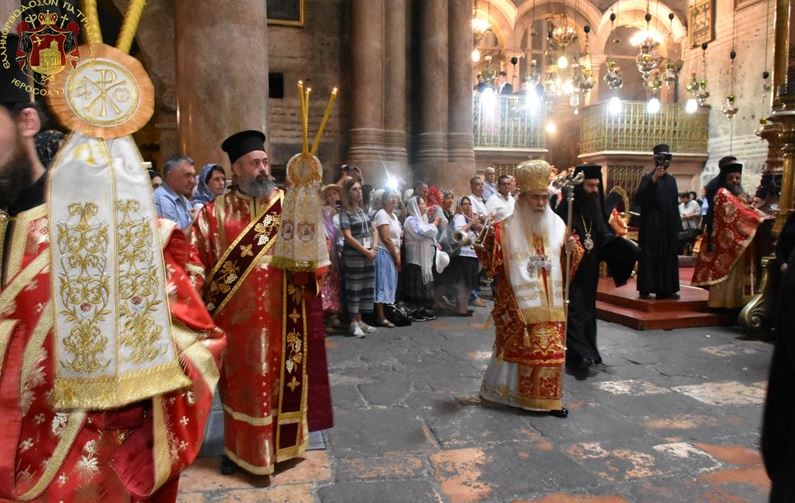This event was celebrated at the Holy Sepulchre with the Divine Liturgy which was officiated by H.H.B. our Father and Patriarch of Jerusalem Theophilos with co-celebrants the Most Reverend Metropolitan Isychios of Kapitolias, the Most Reverend Archbishops; Theophanes of Gerassa, Aristarchos of Constantina, Theodosios of Sebastia, Demetrios of Lydda and the Most Reverend Metropolitan Joachim of Helenoupolis, Hagiotaphite Hieromonks with first in rank Elder Kamarasis Archimandrite Nectarios, Archdeacon Mark, Deacon Sophronios and other Deacons. The chanting was delivered by the Choir Leader of the Church of the Holy Sepulchre Mr. Constantinos Spyropoulos and the service was attended by the Consul General of Greece in Jerusalem Mr. Christos Sophianopoulos and many pilgrims.