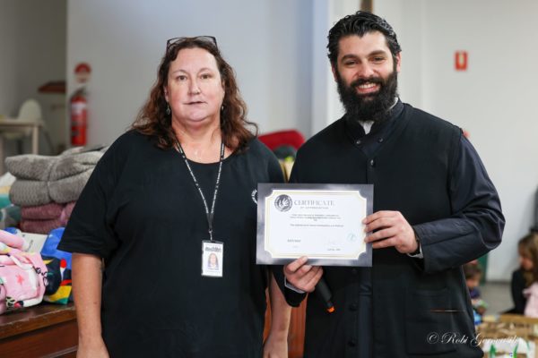 After the morning talks, the children conducted a number of activities including writing messages of hope and love for the homeless, preparing first-aid packs and packing toiletry and care packs. All of these packs and all of the donated items were then sorted and loaded onto the Perth Homeless Support Group van. The volunteers from the Perth Homeless Support Group marvelled as they had to make two trips with the large van just to fit the huge amount of items collected and donated from the Parish. They thanked the children and the Parish for the incredible donations and presented them with a certificate of appreciation.