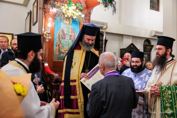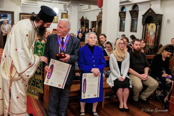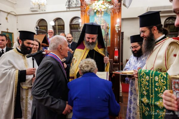 Following this, His Eminence awarded the Medal of the “Order of the Christ-loving” to Dimitrios and Marina Gougoulis who have served the Church of Sts Constantine and Helene for approximately 30 years. His Eminence commended the couple and thanked them for their service, adding that all their work for the Church had been selfless work from their heart.