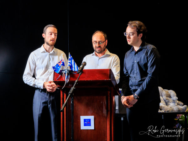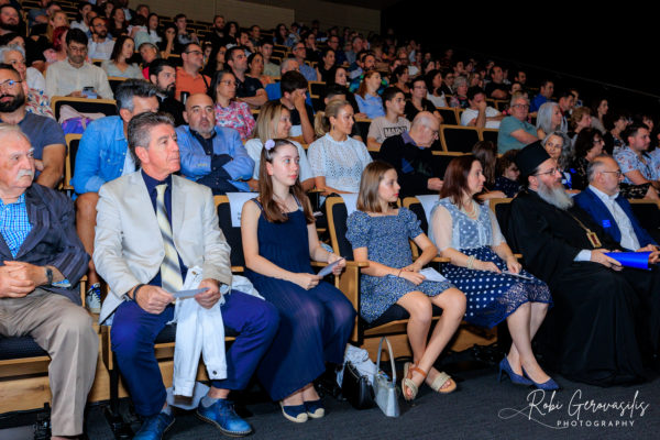 After the short break, the audience was addressed by the Chair of the GLCI School Board, Mr Georgios Tsitiridis, who presented a video summary of the school’s activities and outlined the exponential growth in student numbers since the inception of the school three years ago. He proceeded to thank all those members of the school and wider Greek community for their support of the school. Special thanks and Certificates of Appreciation were offered to His Grace Bishop Elpidios of Perth, Father Emmanuel Stamatiou, Parish Priest of the Church of Evangelismos, the former President of the Evangelismos, Mr John Karakatsanakis and Vice Chair of the Board, Dr Angela Evangelinou-Yiannakis. The GLCI P&F President, Mrs Erifili Ciombras and her team of parents was also acknowledged for her effort and that of the association in fundraising for the school throughout the year.