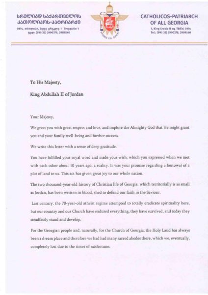 The 4,000 m2 land, now property of Georgia, is located 15-20 meters from the place of the Savior’s baptism in the River Jordan.