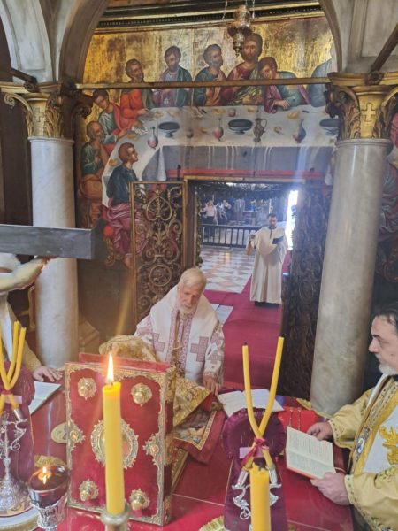 On Sunday, 16 June 2024, the Sunday of the Holy Fathers of the 1st Ecumenical Council, a Poly-Hierarchical Divine Liturgy took place at the Cathedral Church of Saint George of the Greeks in Venice, and was presided over by His Eminence Metropolitan Meliton of Philadelphia, who was joined in concelebration by His Eminence Metropolitan Polykarpos of Italy and His Grace Bishop Georgios of Krateia, on the occasion of the 450th anniversary of the completion of the historic Church of Saint George of the Greeks (San Giorgio dei Greci)