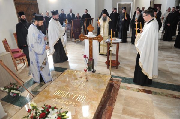 Patriarch Porfirije served the memorial service to Bishop Milutin, the first hierarch of the restored Diocese of Valjevo, considering it has been a year since his earthly demise.