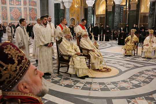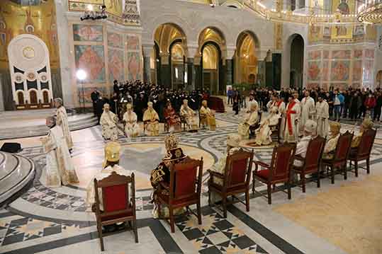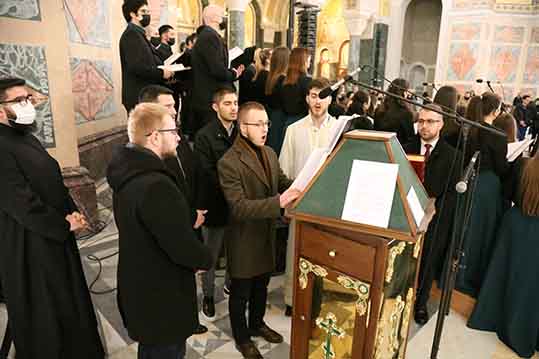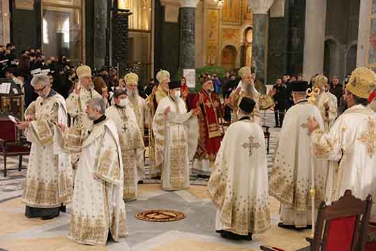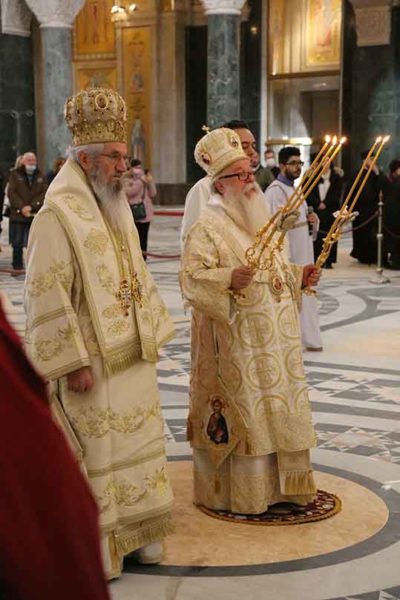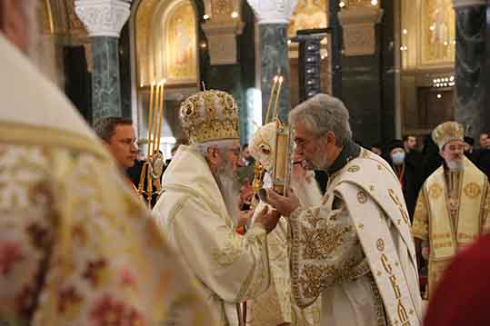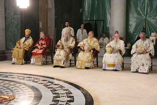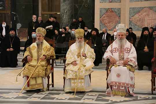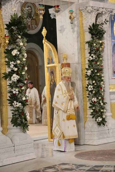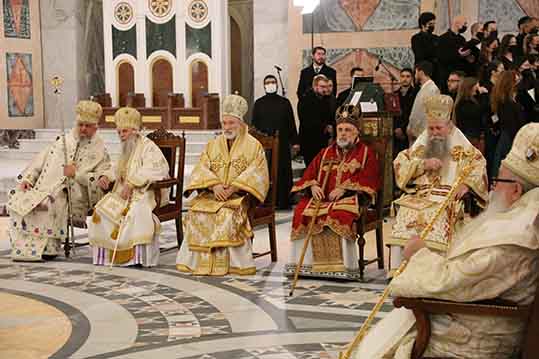 The Holy Assembly of Bishops of the Serbian Orthodox Church began with the Holy Hierarchal Liturgy at the Saint Sava Memorial Cathedral in the Vracar district, Belgrade, at 9 am on February 18, 2021. The Liturgy was officiated by His Eminence Metropolitan Hrizostom of Dabar-Bosnia with the concelebration and prayerful presence of the hierarchs of the Serbian Orthodox Church gathered on the occasion of the election of the new Primate of the Serbian Orthodox Church.