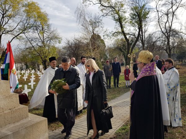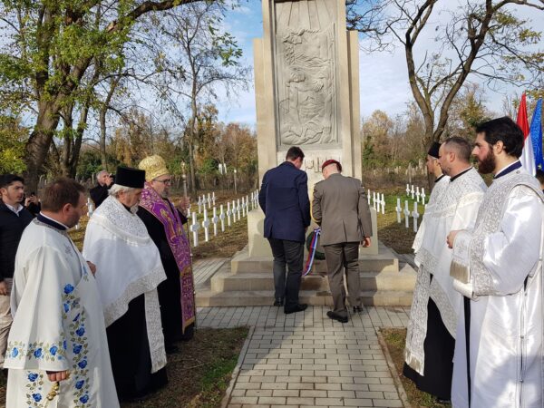Wreaths were laid on the central monument to Serb victims of World War I by the leadership of the Serb Self-Government in Hungary, the delegation of the Defense and the Embassy R. Serbia, Serbian self-government from Deska, Serbian self-government from Novi Sentivan and hosts Serbian self-government from Szeged.