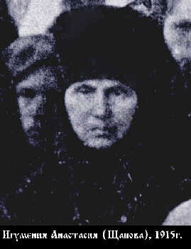 The nuns of the monastery, led by Abbess Anastasia, were arrested in 1921 and sent to a gulag in Chelyabsink for six months. After their release, Mother Anastasia lived in an apartment in Chelyabinsk. Exact information about her future fate is unknown, though according to some of the sisters, she reposed in the early 1930s.