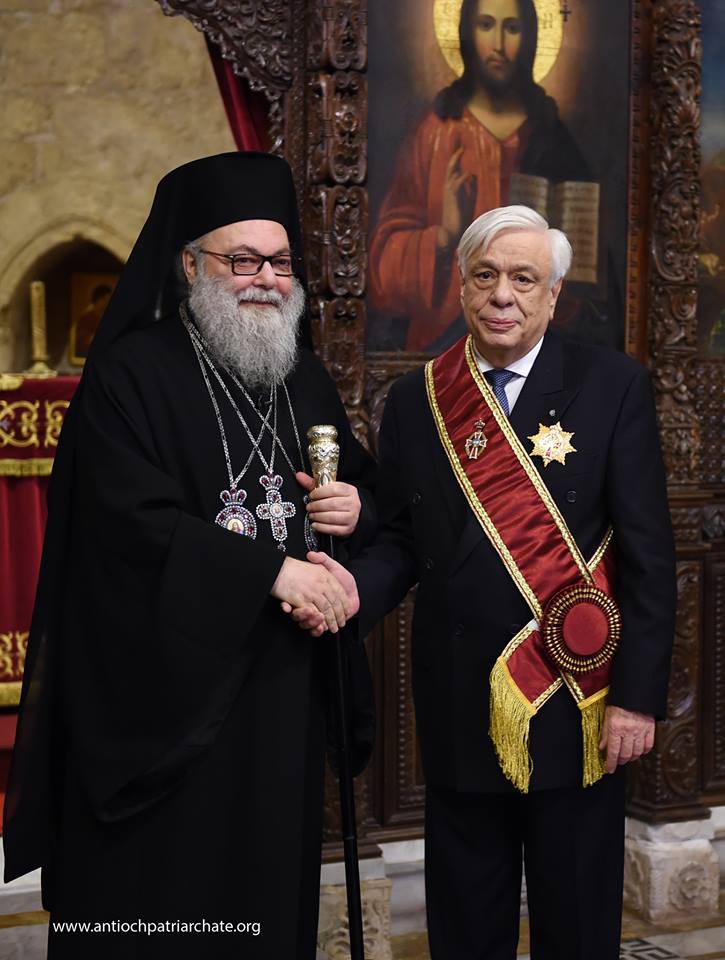 In statements as he accepted the medal, President Pavlopoulos referred to Antioch’s long history as a centre for Greek culture, noting that this tradition was continued by the Antioch Patriarchate.
