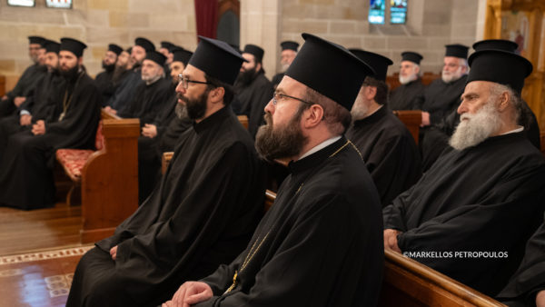 Finally, the Archbishop provided the necessary instructions on current administrative and practical issues, while a short speech was delivered by His Eminence Metropolitan Prodromos of Rethymno and Avlopotamos, who expressed his spiritual joy for the opportunity given to him to communicate and reflect with the Holy Clergy and the pious faithful of the Holy Archdiocese of Australia. Also, the Hierarch of the Church of Crete congratulated everyone for the magnificent reception and hospitality of the Ecumenical Patriarch in Australia, stating that, by watching the Patriarchal Divine Liturgies that were broadcast online, he himself participated experientially in the joy of the local Church.