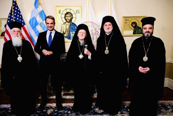 Manhattan, N.Y. — Greek Prime Minister Kyriakos Mitsotakis met on Tuesday with His All-Holiness Ecumenical Patriarch Bartholomew at the headquarters of the Greek Orthodox Archdiocese of America in New York, where he was welcomed by His Eminence Archbishop Elpidophoros of America.