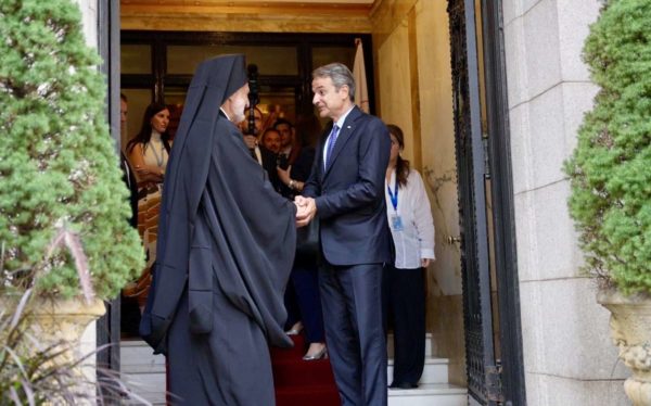 Prime Minister Mitsotakis meets with Ec. Patr. Bartholomew, Abp. Elpidophoros