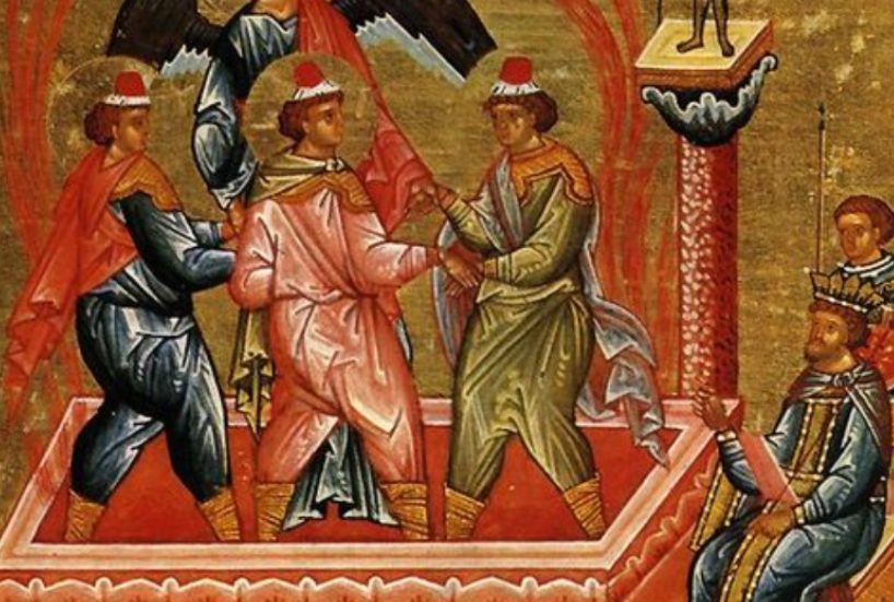 Dhe pasi përmendën të gjitha qeniet, ata e thirrën njëri-tjetrin si më të vegjlit dhe më të përulurit, duke thënë me zë të lartë: “Lavdërojmë, bekojmë dhe adhurojmë Zotin, Zotin e këndojmë, dhe e lartësojmë përmbi të gjitha jetët, sepse na ka shpëtuar nga ferri, Ai na ka çliruar nga duart e vdekjes, na ka shpëtuar nga furra e flakës së përvëluar” (Dan. 3). Ata nuk harruan asgjë nga krijesa dhe i mblodhën të gjitha këto në vallëzimin e tyre rreth Fjalës së Perëndisë, që përfaqësohej në mënyrë të mistershme në formë njerëzore nga engjëlli i zbritur në zjarr për t’i shpëtuar. E pa edhe vetë Nabukodonosori që u përkul, gjë që na jep paraprakisht konvertimin e paganëve: “Ja ajo që po shikoj, katër njerëz të lidhur për dore që po shëtisin në mes të zjarrit. Ata nuk kanë pësuar asgjë të keqe dhe pamja e të katërtit është e ngjashme me atë të Birit të Perëndisë” (Dan. 3:25). Ai i nxori nga furra dhe konstatoi me të gjithë njerëzit e oborrit të tij se zjarri nuk kishte kurrfarë pushteti për t’u bërë gjë dhe se nuk kishte lënë sipër tyre as erën më të vogël. Atëherë mbreti lavdëroi Perëndinë, i rivendosi të Tre Djemtë në funksionet e tyre të mëparshme dhe urdhëroi të vritej cilido që do të guxonte tashmë e tutje të blasfemonte kundër Perëndisë së Izraelit.