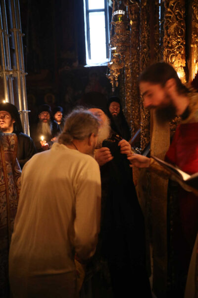 Below you will see photos from a service of great schema tonsure. Vatopedi Monastery, Mount Athos.
