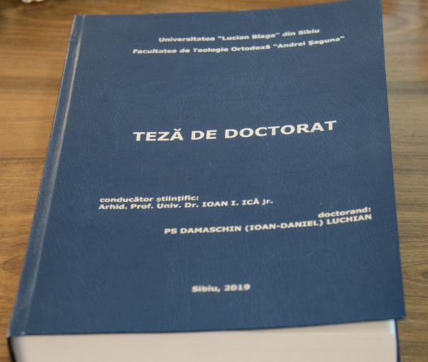 Sala „Spiridon Cândea” a Facultăţii de Teologie Ortodoxă „Sfântul Andrei Şaguna” din Sibiu a găzduit miercuri, 18 decembrie, un eveniment academic de ținută, prilejuit de susţinerea publică a două teze de doctorat remarcabile, notate la final de comisia de evaluare cu „Excepțional”. Prima teză prezentată public a fost cea elaborată de Preasfinţitul Părinte Damaschin Dorneanul, Episcopul-vicar al Arhiepiscopiei Sucevei şi Rădăuţilor. Lucrarea ierarhului este intitulată „Dimensiunea mistagogică a Săptămânii Sfintelor Pătimiri. Elemente de antropologie duhovnicească”, fiind scrisă sub coordonarea ştiinţifică a arhid. prof. univ. dr. Ioan I. Ică jr. Cea de-a doua teză susţinută public miercuri la Sibiu se intitulează „Spiritualitatea jertfei în opera Părintelui Dumitru Stăniloae. Regândirea unui parcurs teologic în receptarea neo-patristică”, fiind elaborată de Ionuţ Vasile Crişan, sub îndrumarea aceluiaşi profesor.