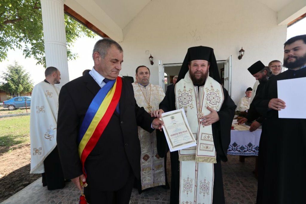 Ierarhul a acordat totodată distincții oficialităților locale și membrilor consiliului parohial care au făcut eforturi pentru construirea capelei.