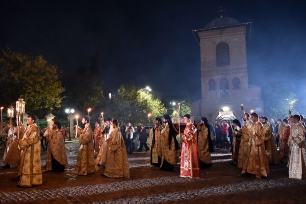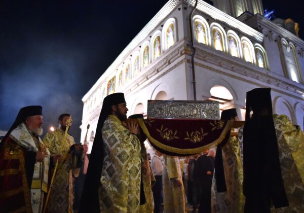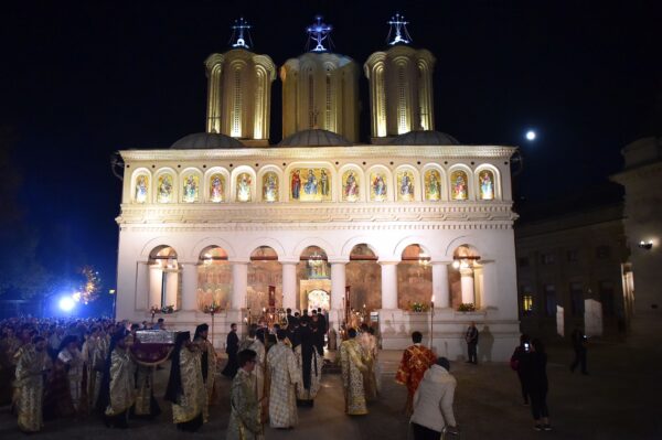 Preasfinţitul Părinte Varlaam Ploieşteanul, Episcop vicar patriarhal, a condus duminică seara procesiunea din jurul Catedralei Patriarhale cu veşmântul Sfintei Cuvioase Parascheva.