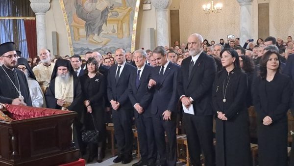Kryeministri Edi Rama, kreu i PD-së, Sali Berisha, Kryeministri i Greqisë, Kyriakos Mitsotakis, bëhen bashkë për nder të kryepiskopit Anastas Janullatos.