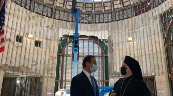 Earlier this year, Archbishop Elpidophoros of America used sprigs of basil and holy water to bless the restart of construction works at the St. Nicholas Greek Orthodox Church. Construction was set to resume in the spring, then COVID hit, grounding all non-essential projects statewide to a halt for months.