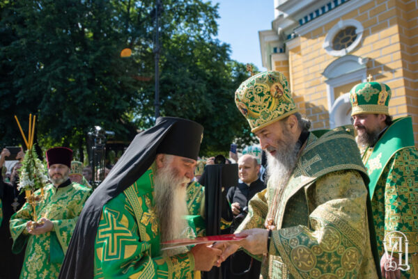 The Primate of the Ukrainian Orthodox Church celebrated the Divine Liturgy on the square before the Cathedral of the Dormition at the Laura of the Caves in Kiev on 25 June 2019, the commemoration day of his heavenly patron St. Onufry the Great. Representatives of many Local Orthodox Churches took part in the celebration of Metropolitan Onufry’s Name Day, his 75th birthday and the 5th anniversary of his primatial ministry.
