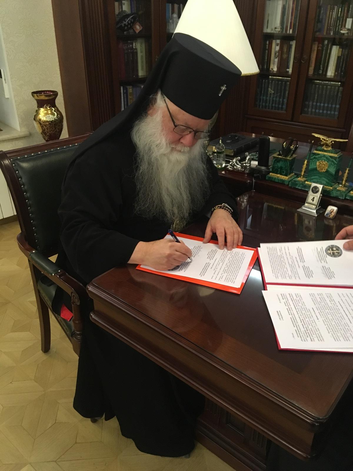A partnership agreement was signed by the rector of the Pastoral School, His Eminence Archbishop Peter of Chicago and Mid-America, and the dean of the University of St. John, His Grace Bishop Anthony of Moravici, on Monday, February 4.