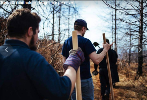 Më pas të fyrmëzuar të rinjtë u nisën drejt pjesës së pyllit të djegur, ku mbollën 200 rrënjë pisha.