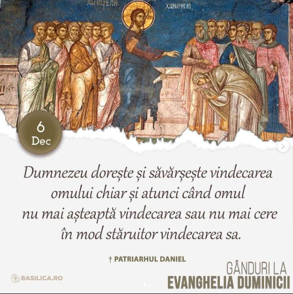 During his homily at the Chapel of St George of his patriarchal residence, Patriarch Daniel referred to the Gospel reading, which presents the Healing of the Infirm Woman.