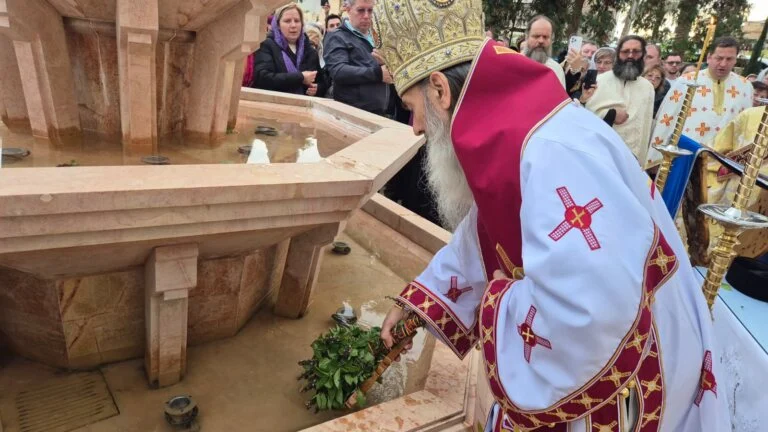 Botezul Domnului a fost sărbătorit luni, conform calendarului nerevizuit, în Patriarhia Ierusalimului. Alături de Patriarhul Teofil al III-lea al Ierusalimului a slujit Arhiepiscopul Teodosie al Tomisului.