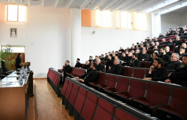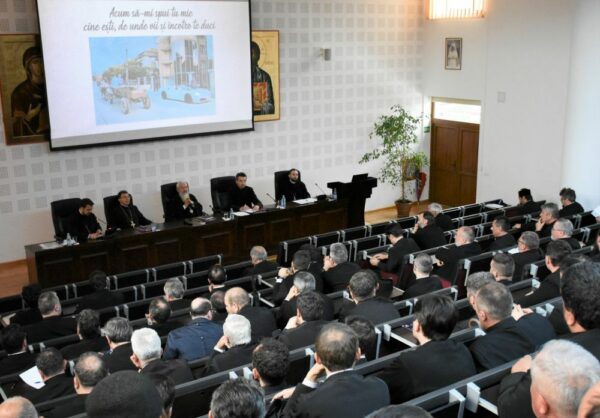 Întâlnirea a reunit peste 200 de preoți şi a continuat în Aula instituției de învățământ teologic, unde Părintele Mitropolit Andrei le-a adresat celor prezenți un cuvânt de bun venit și apoi a vorbit pe tema omagială a Anului 2019 în Patriarhia Română.