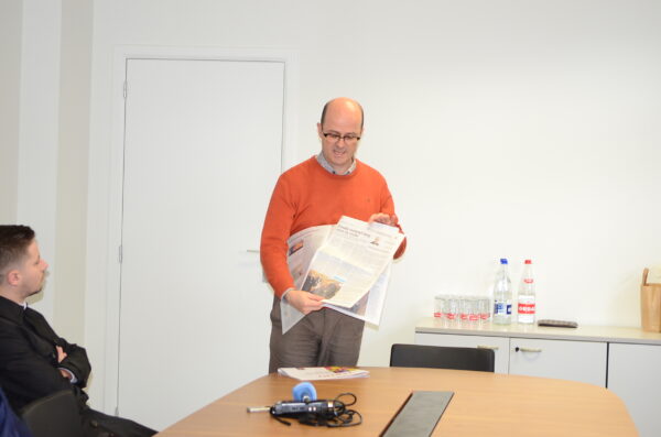 Jurnaliștii au fost primiți de Luk Vanmaercke, editorul șef al publicației. Luk a făcut o prezentare a istoricului Kerk & Leven și a vorbit despre provocările cu care se confruntă redacția ziarului.
